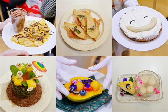 Kobe主厨以其独特的科学视角与烹饪哲学,选用都乐核心产品打造了一场贯穿法国、英国、美国、比利时并回归东方的“环球风味之旅”。从火焰炙烤释放蕉香的法式可丽饼,到传递乐享生活情绪价值的太妃挞;从融合加州轻食理念的元气能量碗,到致敬夏威夷起源的维C火山菠萝宾治;从演绎欧式优雅的比利时啤梨吐司,到包裹东南亚风情的椰香“榴”心汤圆……每一道创意料理都深刻诠释了都乐水果的非凡品质与多样化应用潜力,让与会嘉宾在味蕾的环球旅行中,深切感受到都乐品牌百年传承的品质坚守与创新活力。